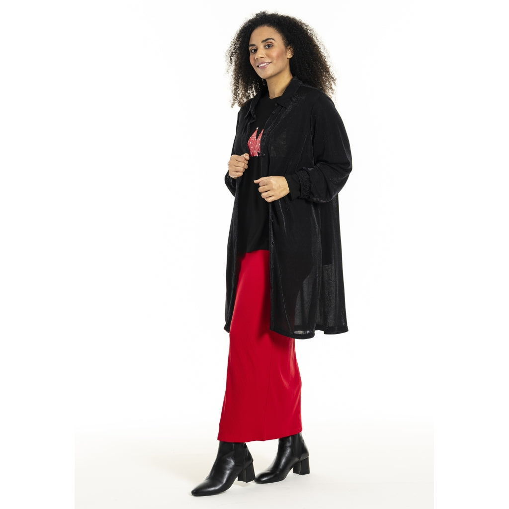 Lækker og elegant, ensfarvet skjorte med glitrende effekt. Skjorten har lange ærmer med kort smock-manchet og skjortekrave med gennemgående knaplukning.