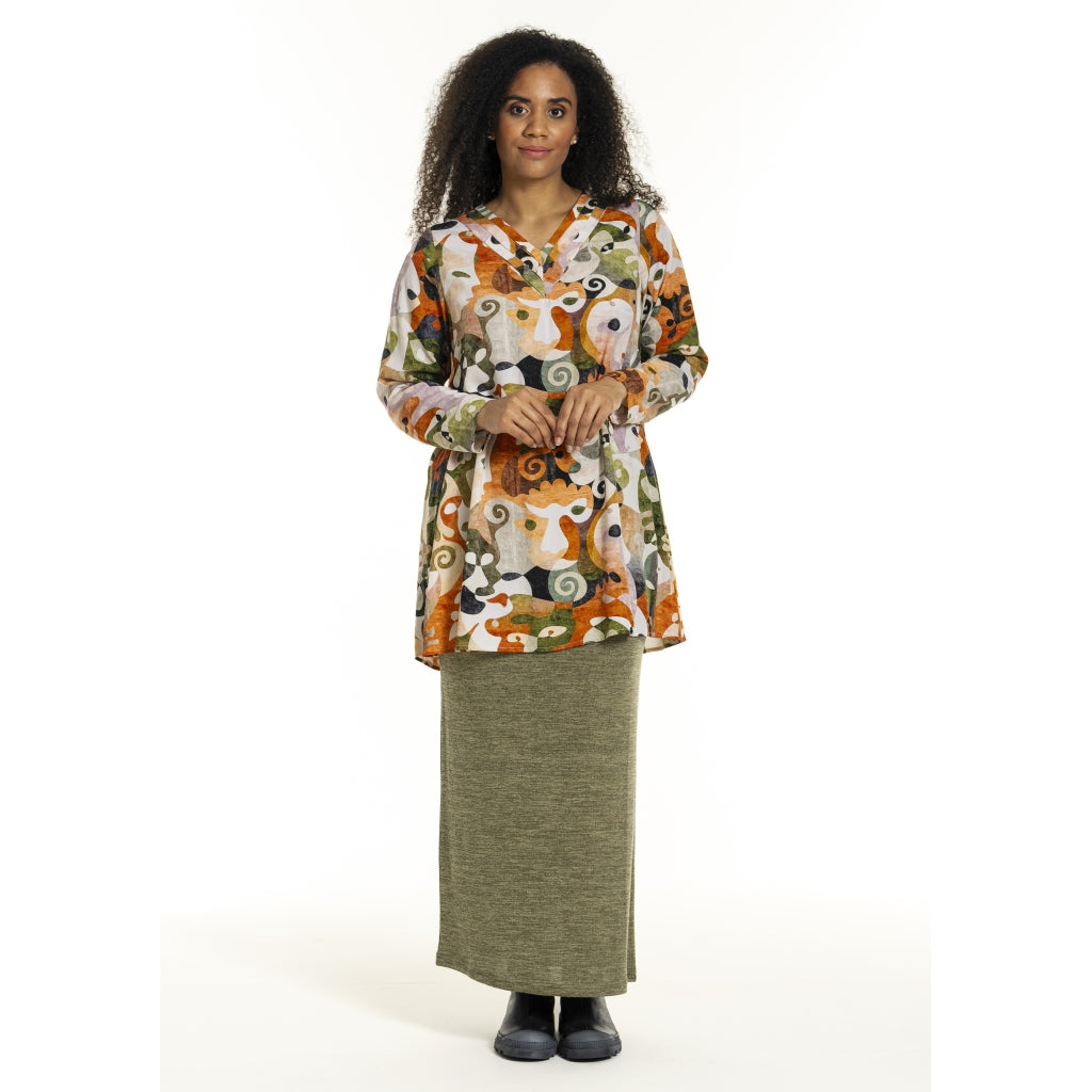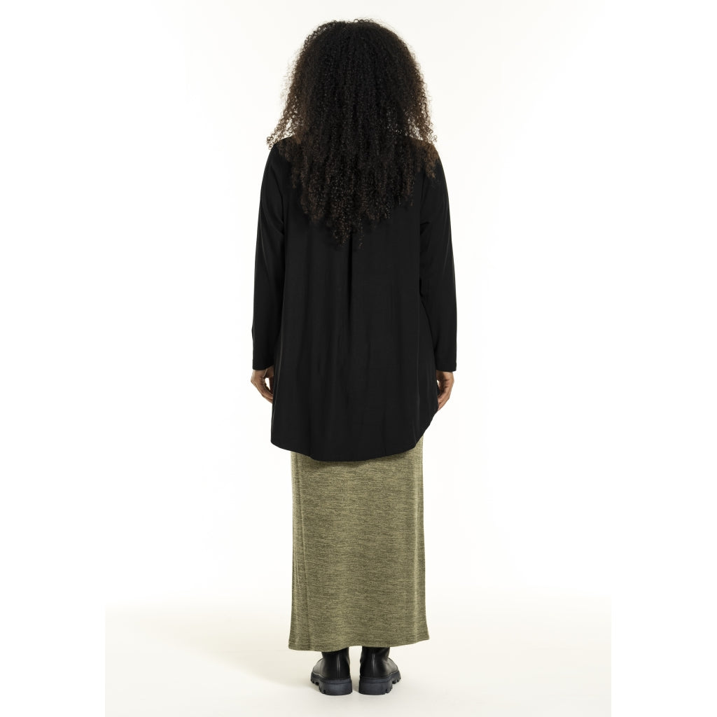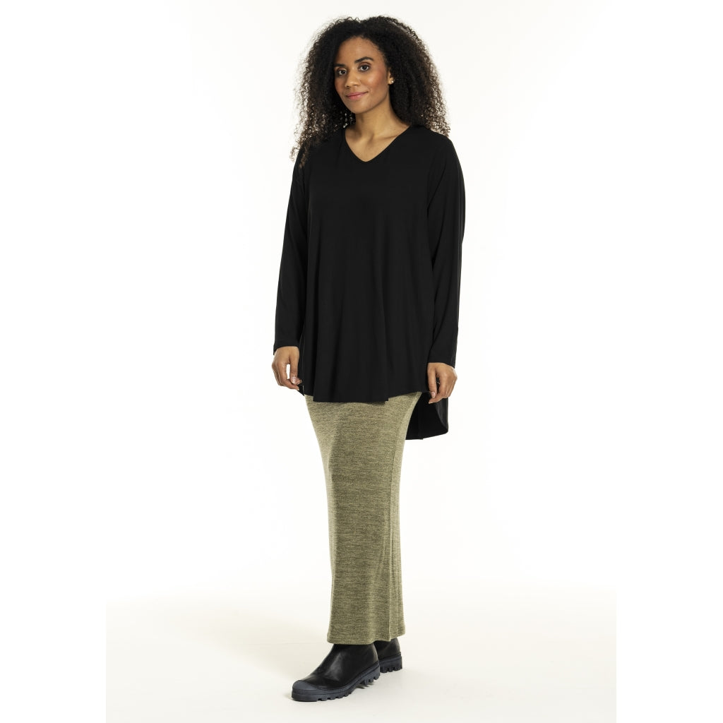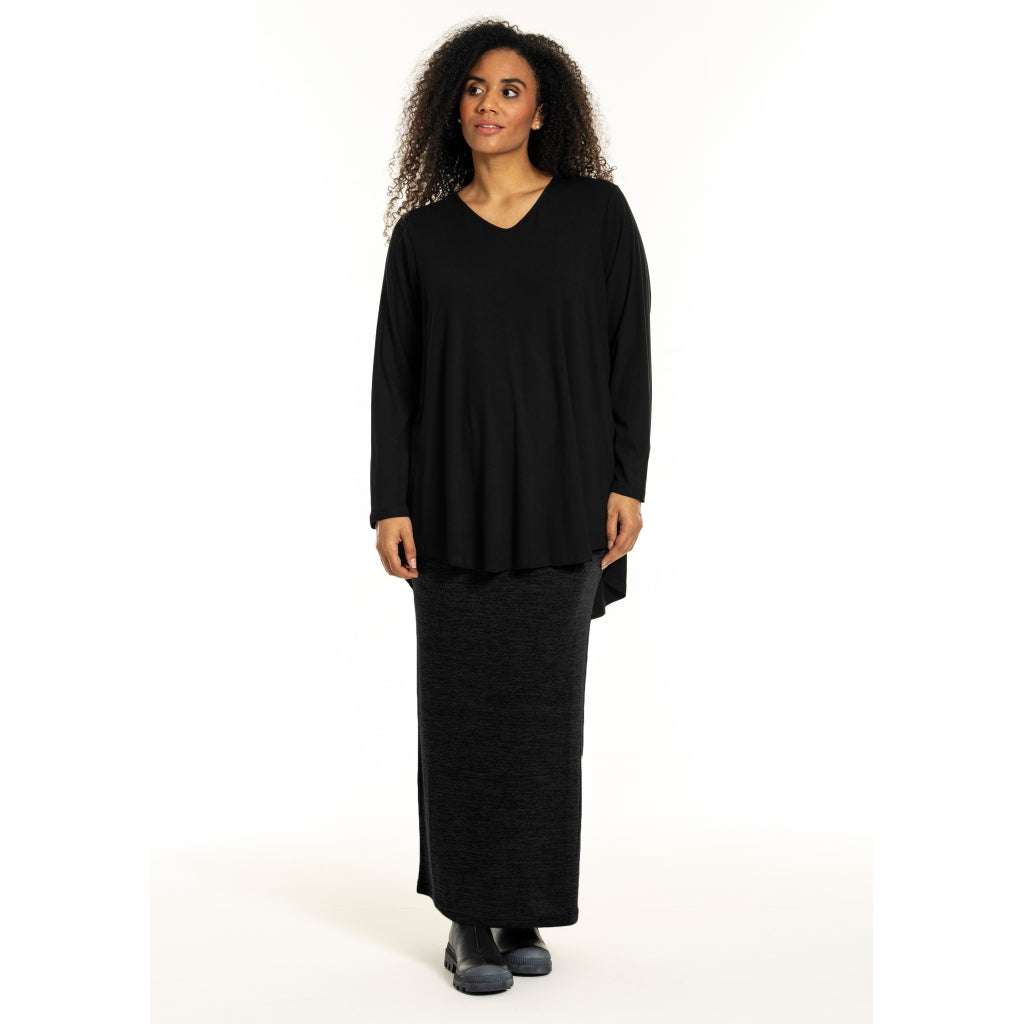 Fin, tætsiddende nederdel i elastisk viskose-polyester mix i ensfarvet, meleret farve. Tynd elastikbånd i taljen.