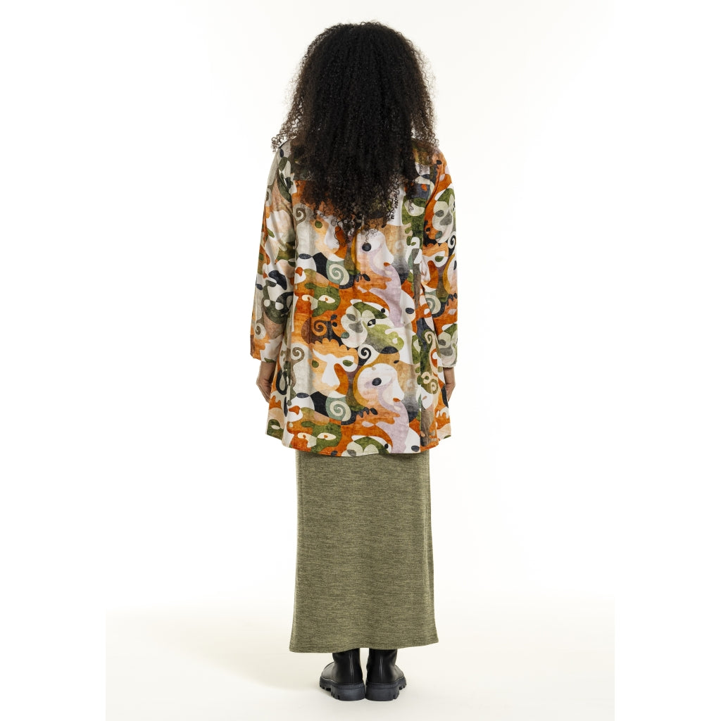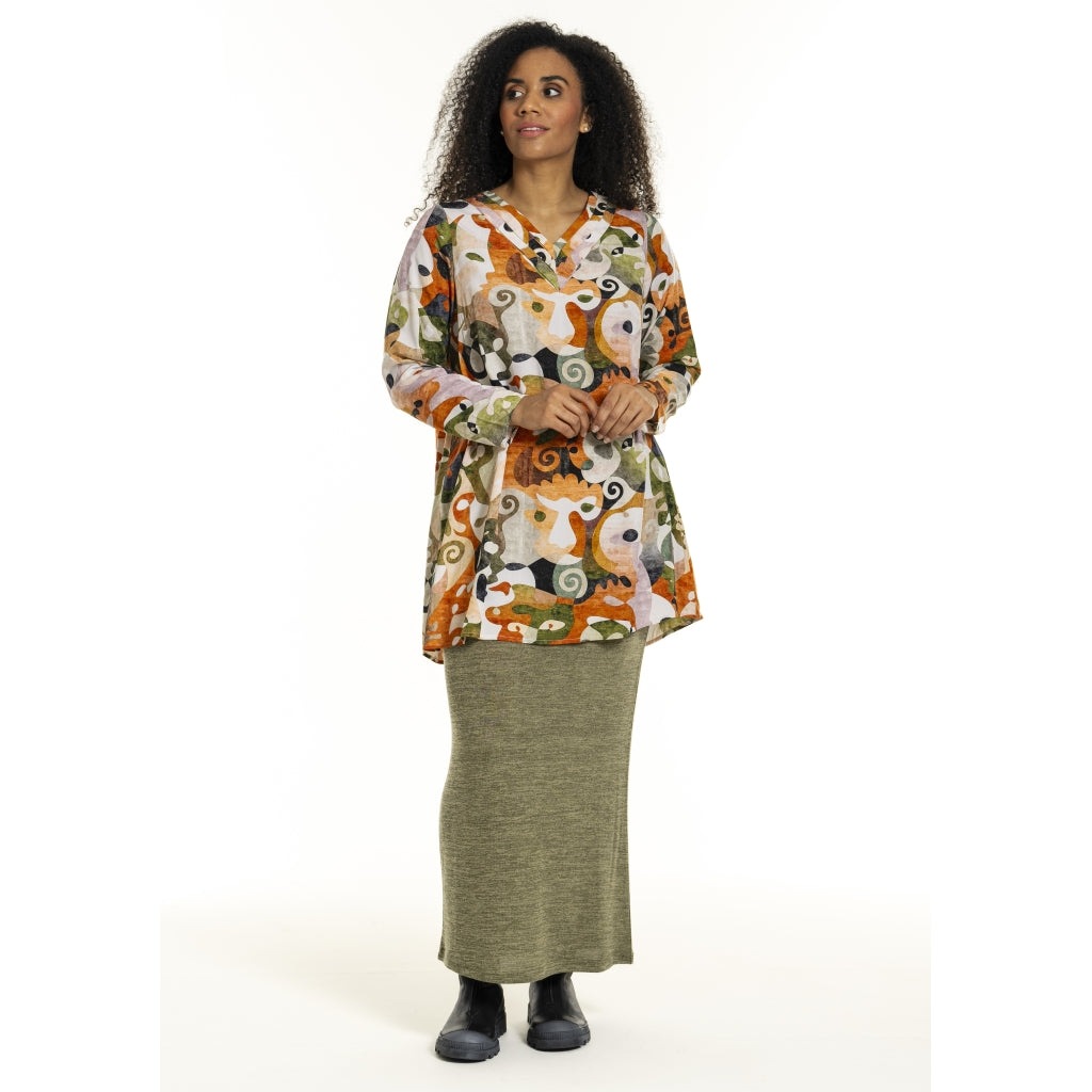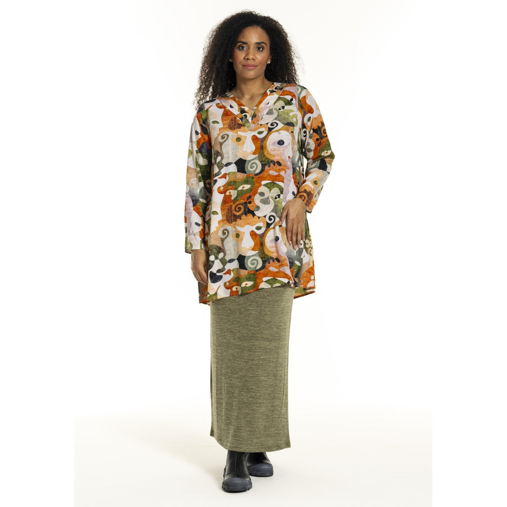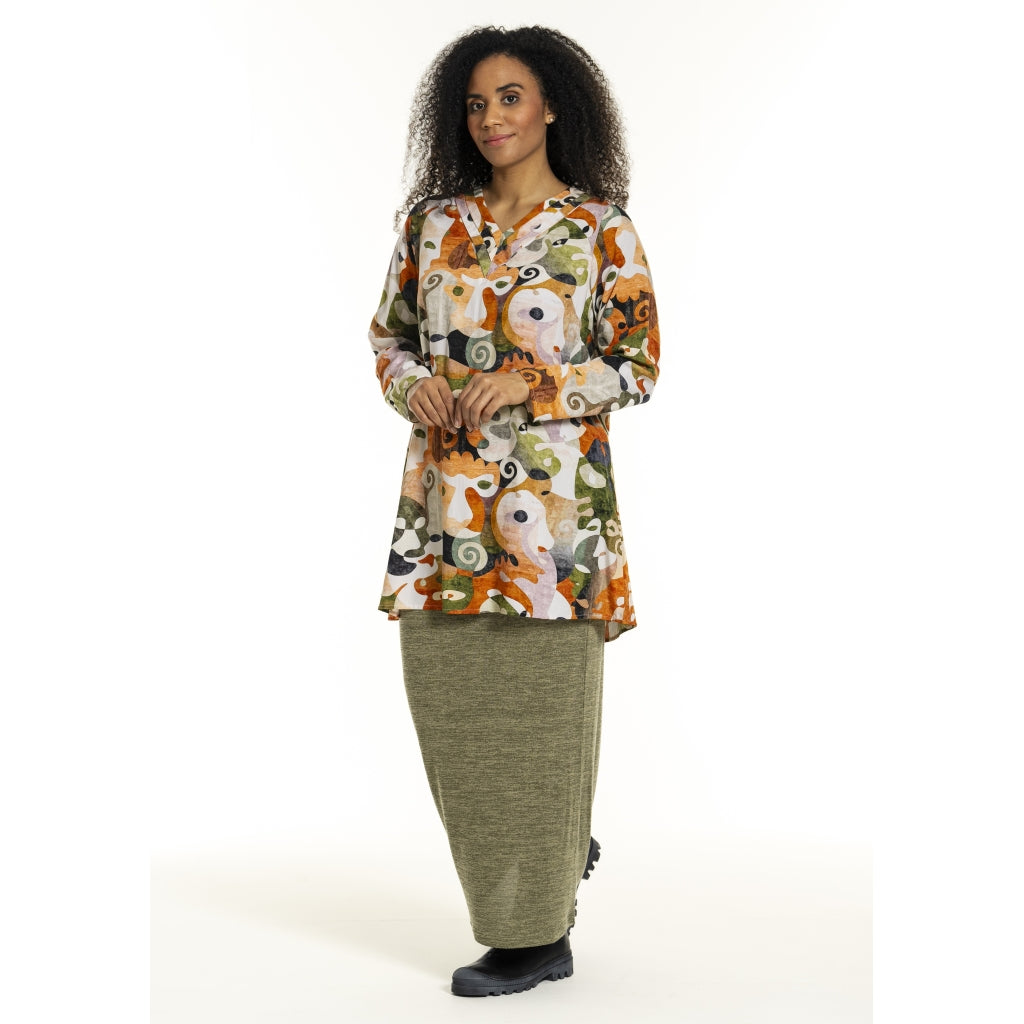 Fin, tætsiddende nederdel i elastisk viskose-polyester mix i ensfarvet, meleret farve. Tynd elastikbånd i taljen.