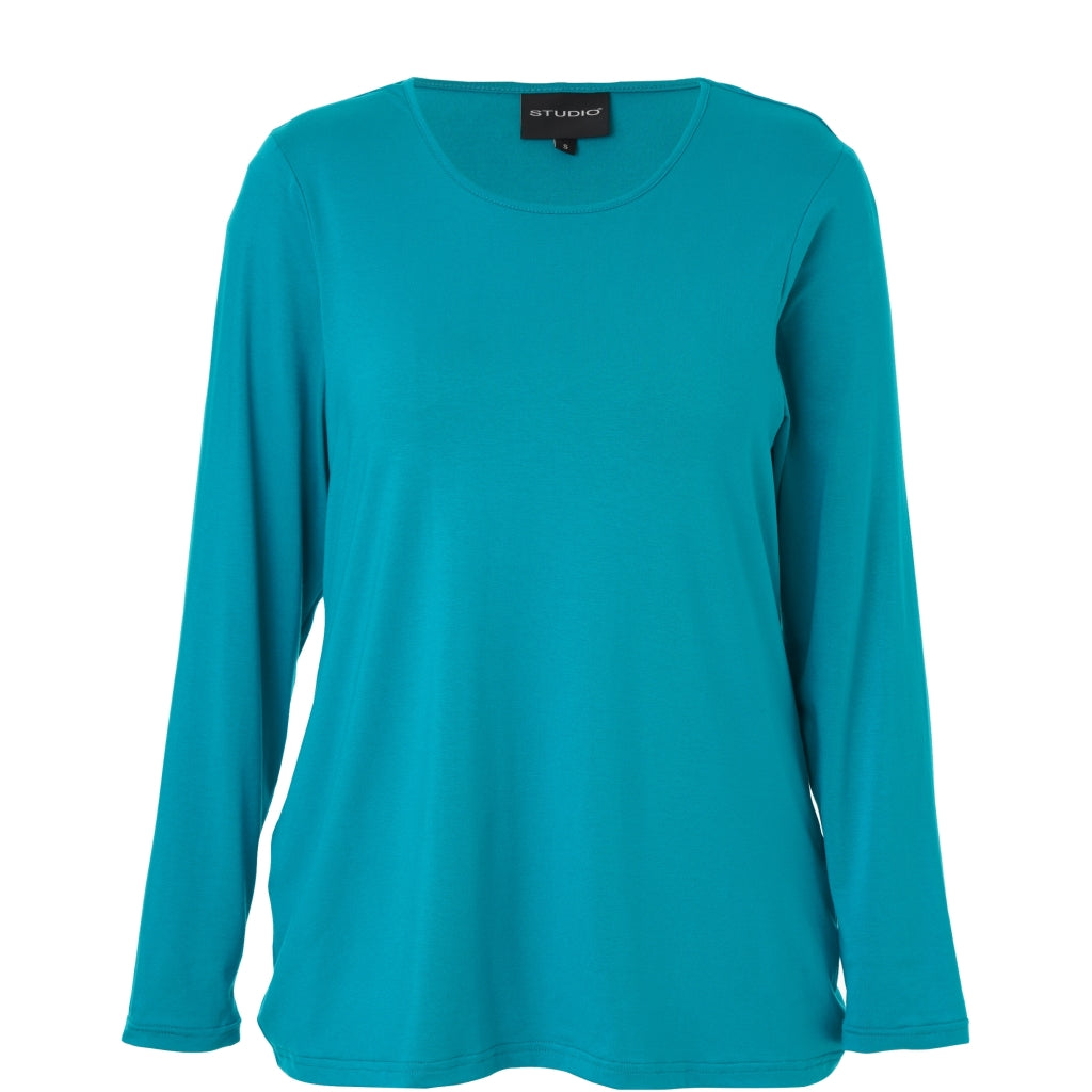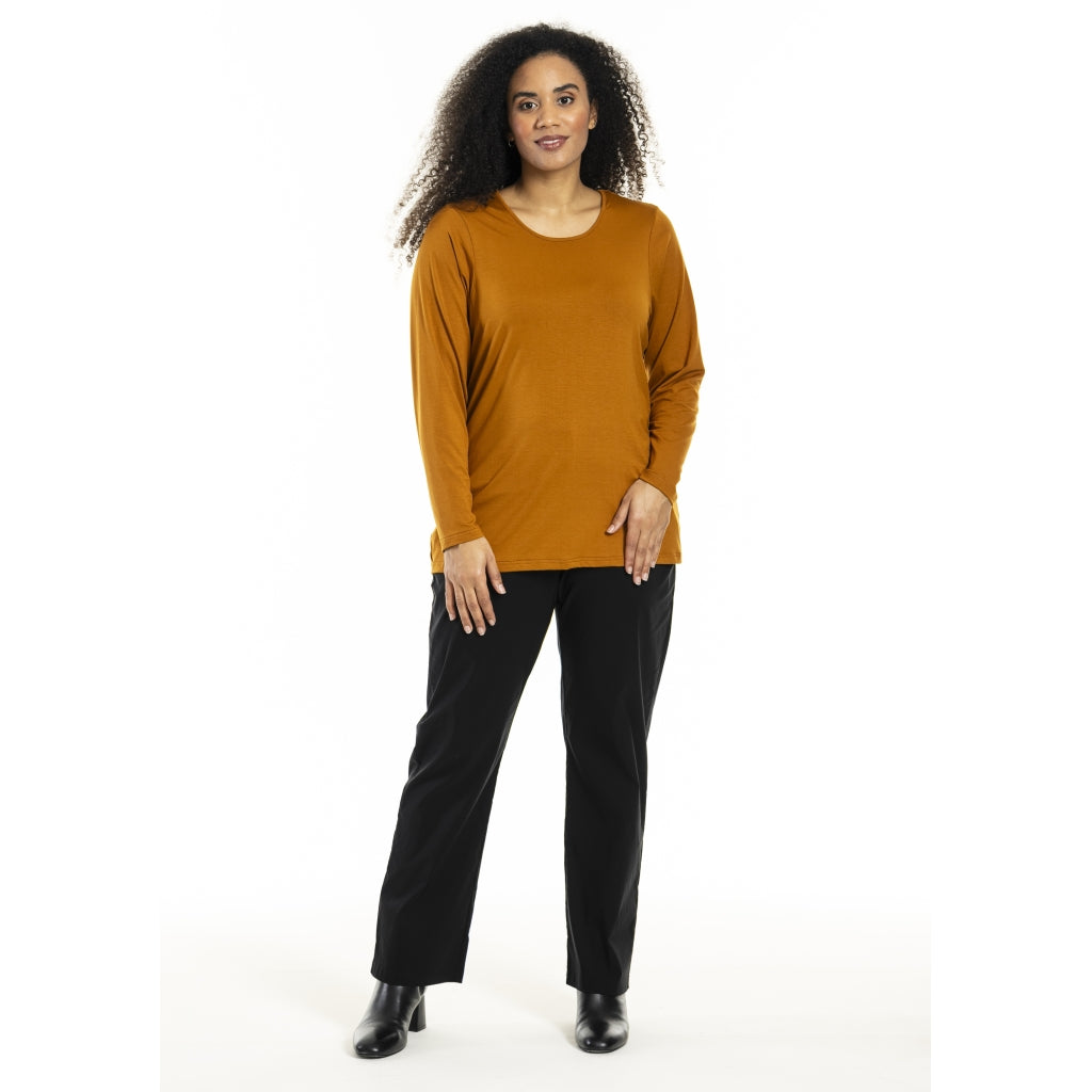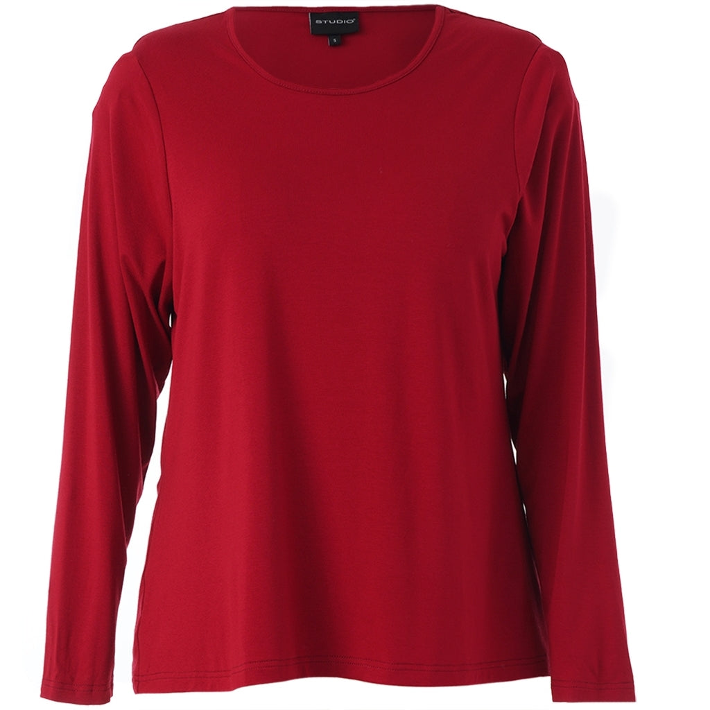 Fin, enkel og ensfarvet langærmet t-shirt i elastisk viskose, jersey. Simpelt design med