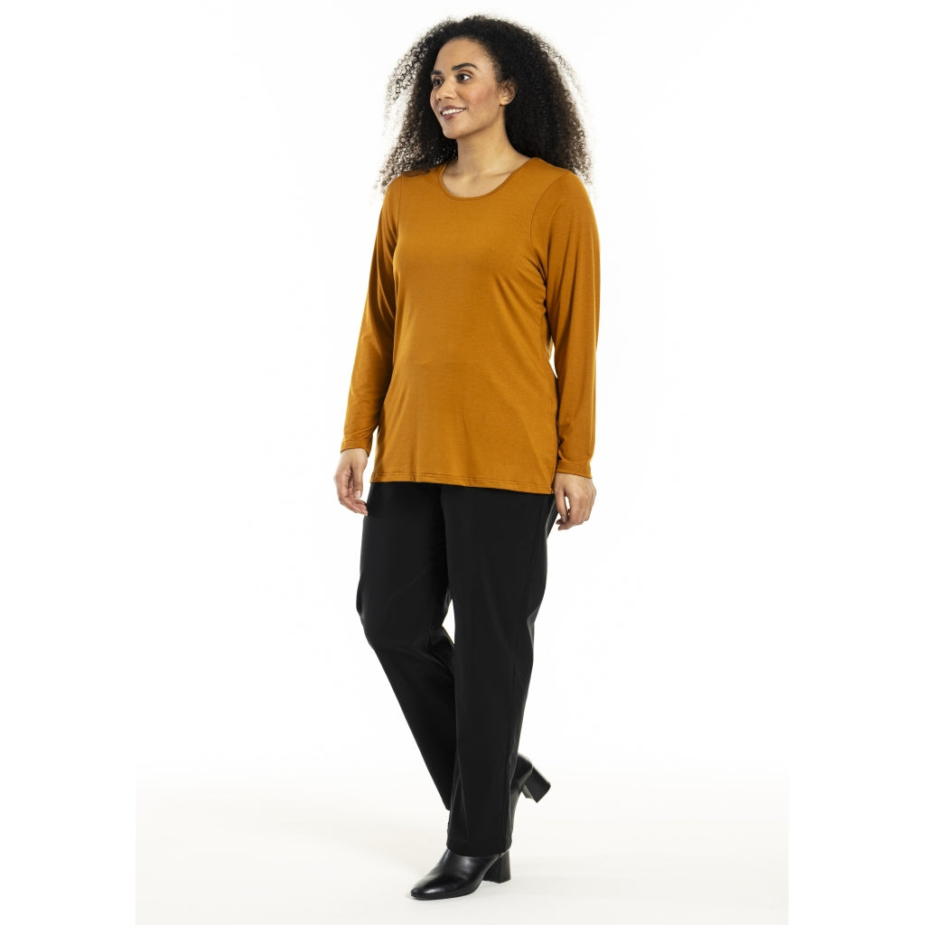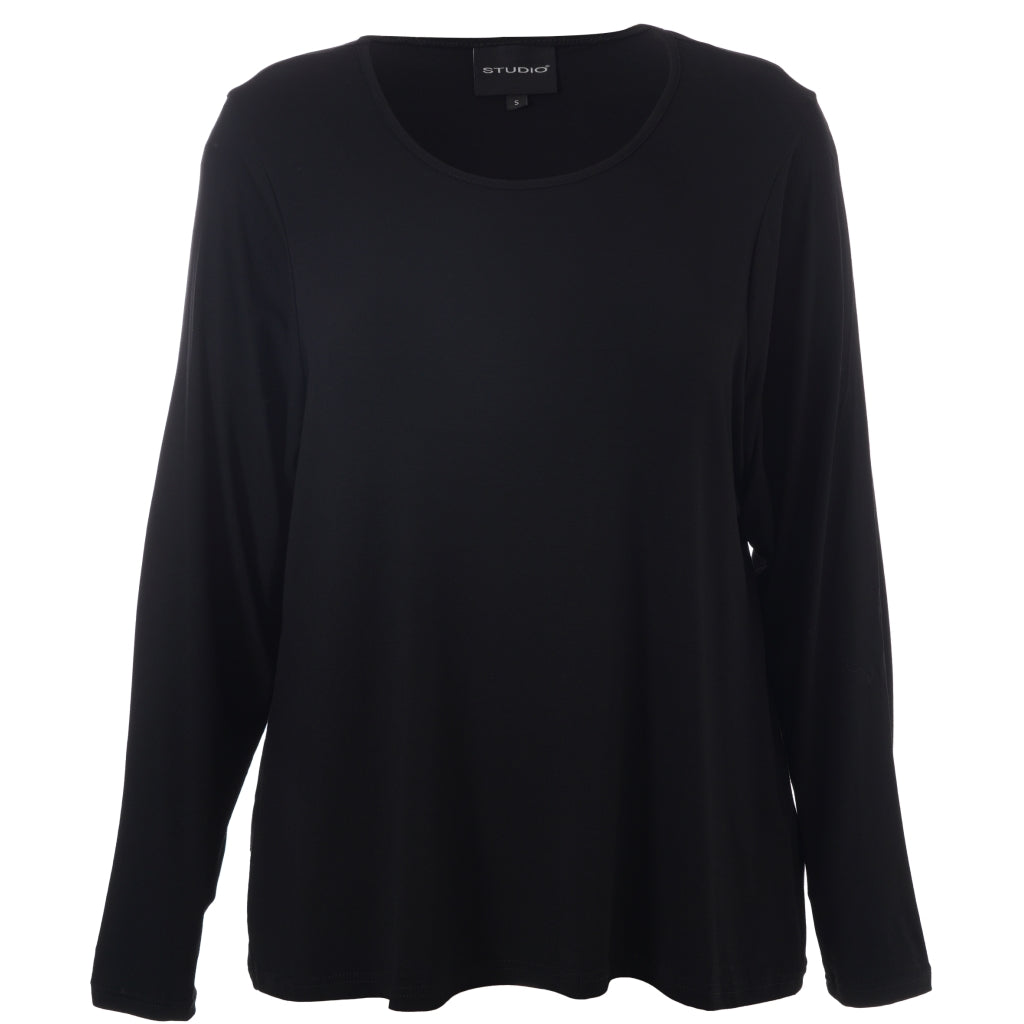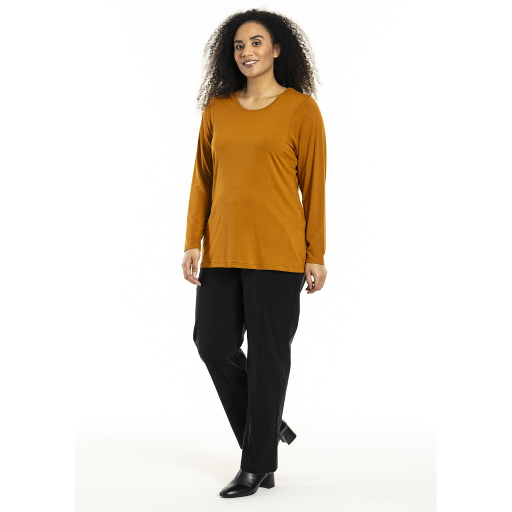 Fin, enkel og ensfarvet langærmet t-shirt i elastisk viskose, jersey. Simpelt design med